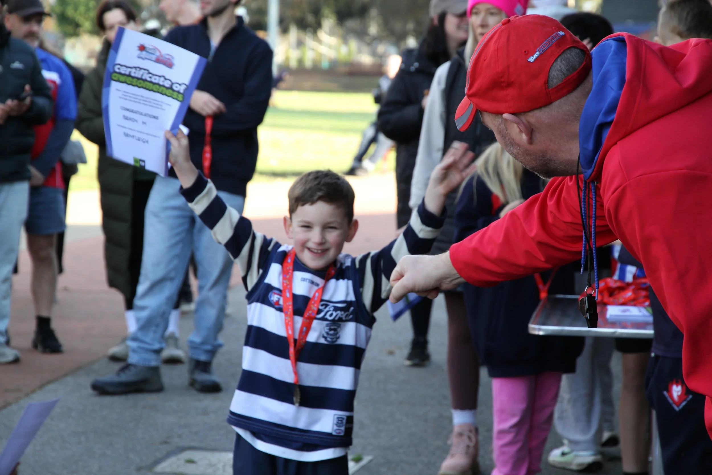 When your child signs up, they’ll receive a full Auskick kit, including a t-shirt, footy, pump, and footy cards to keep the excitement going at home! Plus, to ensure they’re all set for the season, they’ll also have the choice of a bucket hat or beanie to wear proudly during their sessions. It’s all about fun, friendship, and football!